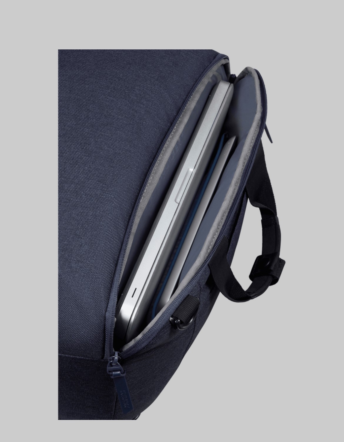 Cartella/Zaino in tessuto impermeabile chiusa da zip con vano per pc 14' e con tracolla rimovibile. Dimensioni: 24,5x38,5x20cm Volume: 23,5 l Peso: 0,6 kg