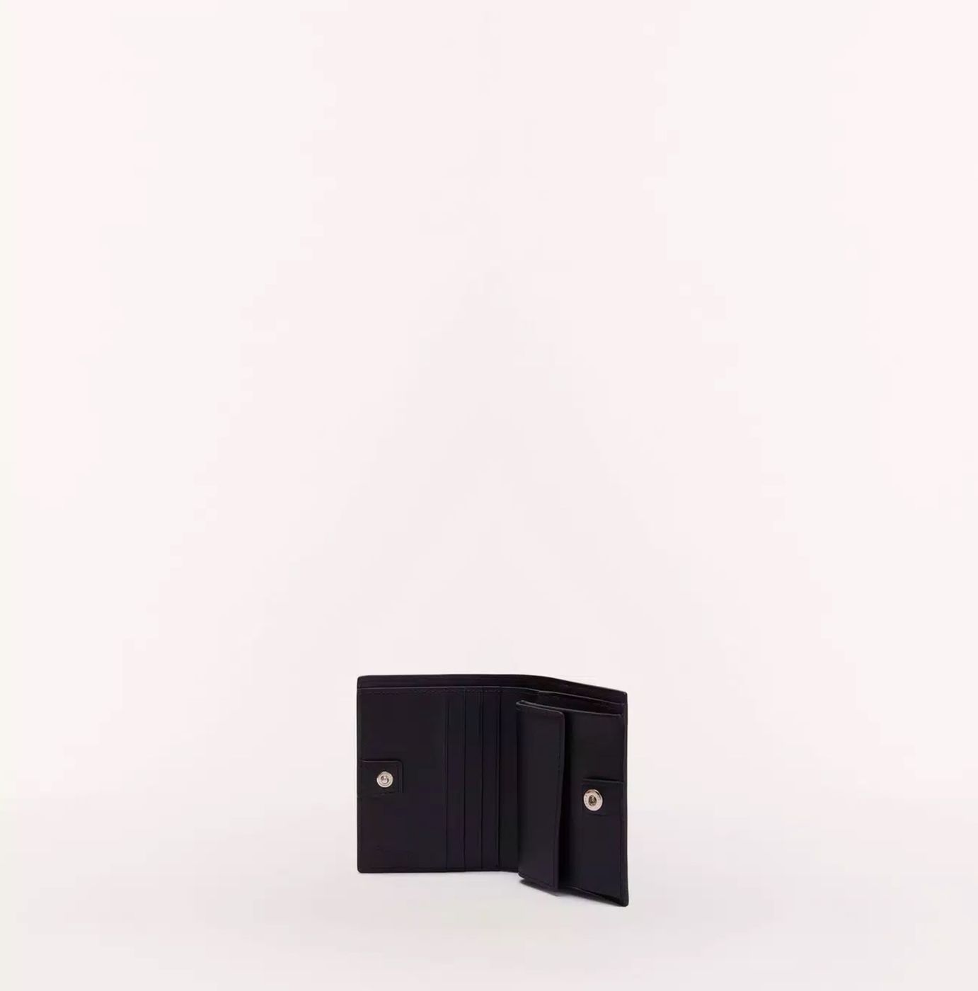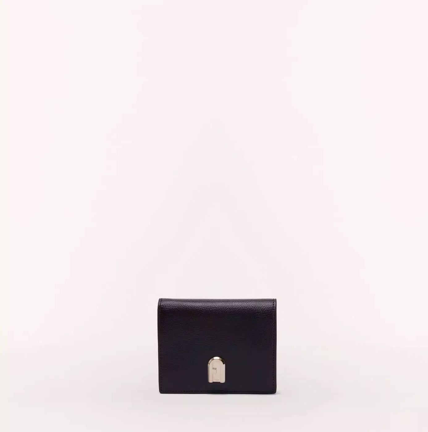 Mini portafoglio FURLA1927 in saffiano Cinque scomparti interni per carte di credito Uno scomparto per banconote e ricevute Porta monete interno con chiusura con pattina e bottone a pressione. Misure: 11.0x 9.0 x 2.5