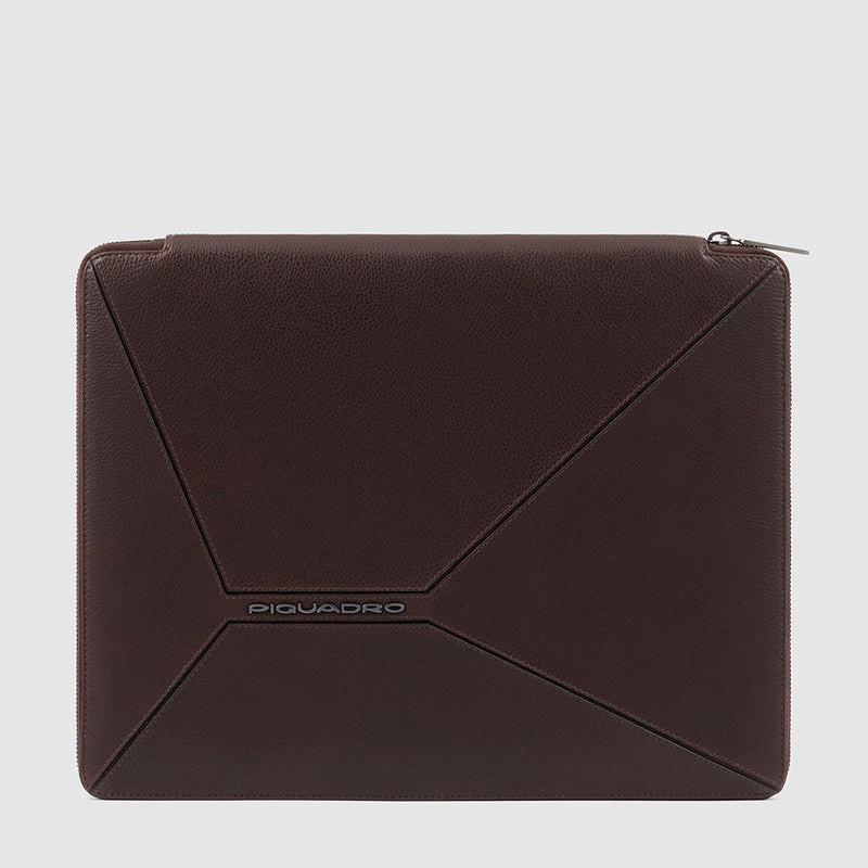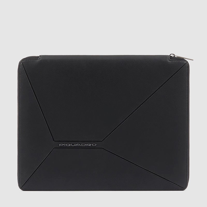 Portablocco formato A4 in pelle chiuso da zip con 8 spazi x credit cards e blocco mobile e con vano per iPad 12.9''.