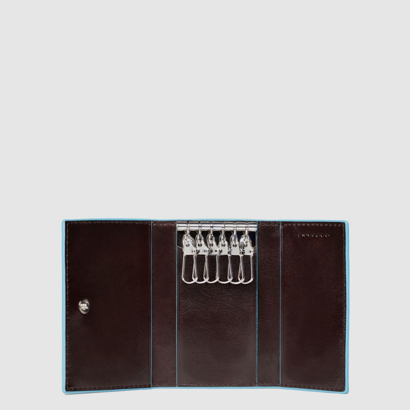 Portachiavi in pelle chiuso con 6 ganci e anello.