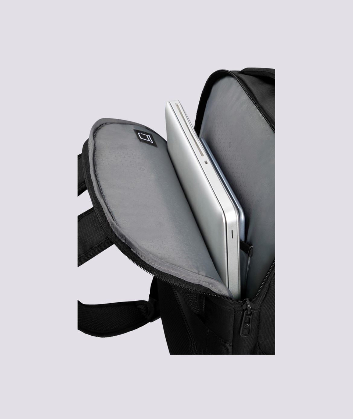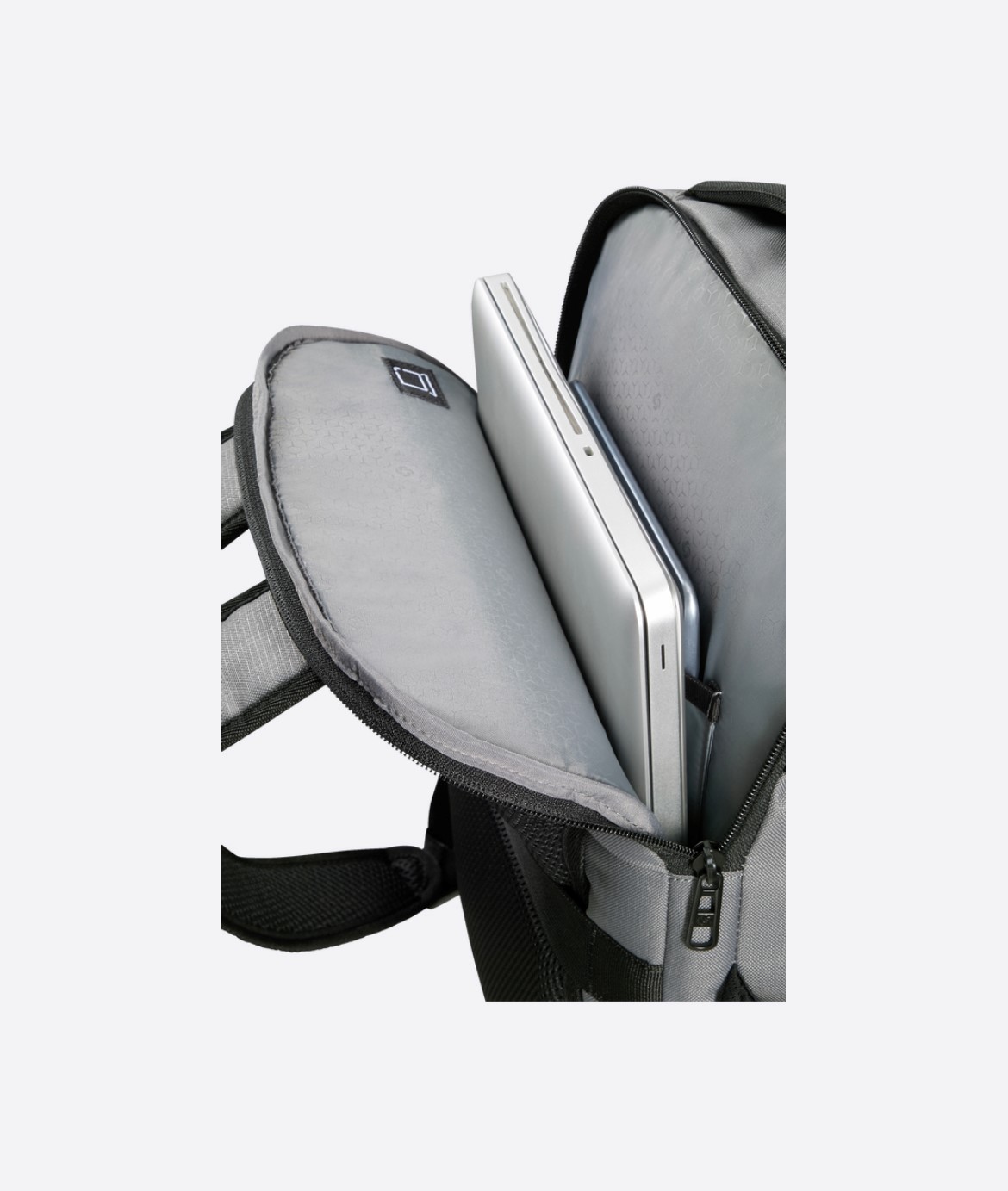 Backpack M in tessuto tecnico impermeabile chiuso da zip 2 scomparti e vano per pc 15,6'' ed entrata USB con cavo. Dimensioni: 44x33x23 cm Capacità: 24L Peso: 0,8 kg